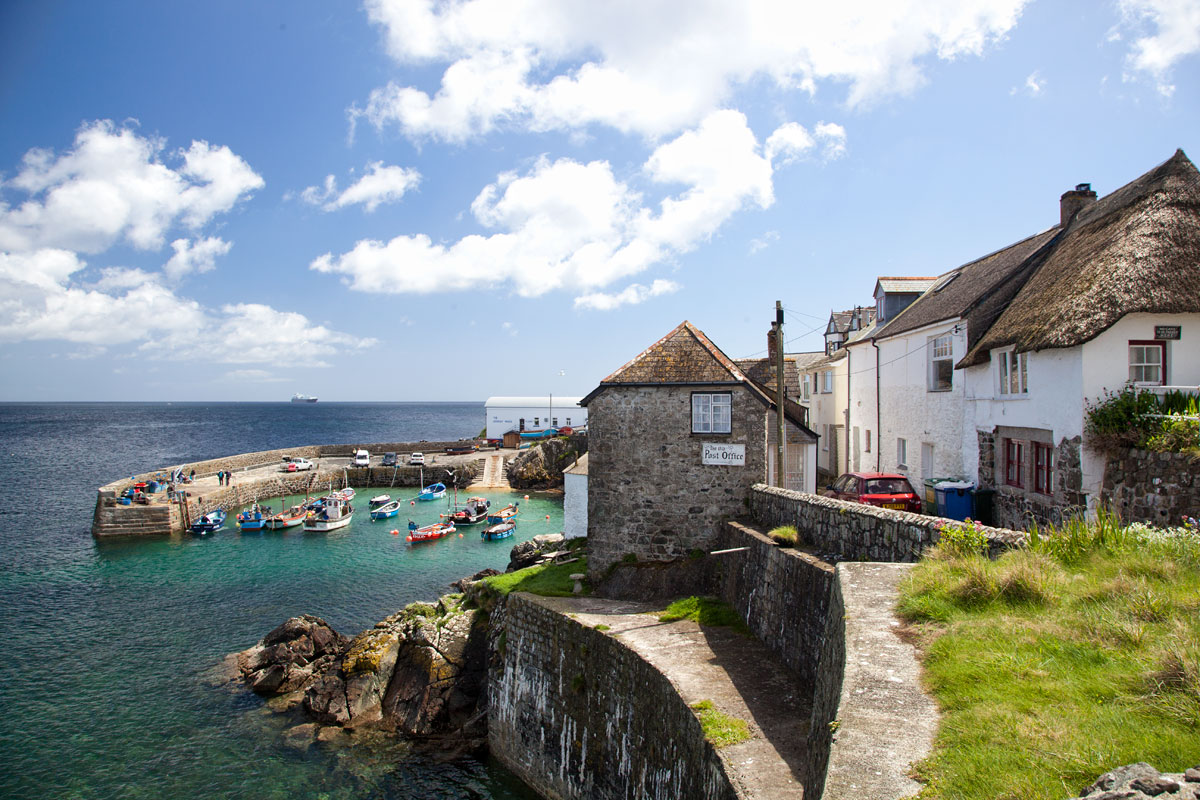 in unspoilt Cornish fishing village with harbour pub, shops ice cream parlour/ coffee shop cafe and award winning bistros' and fish and chips & art gallery