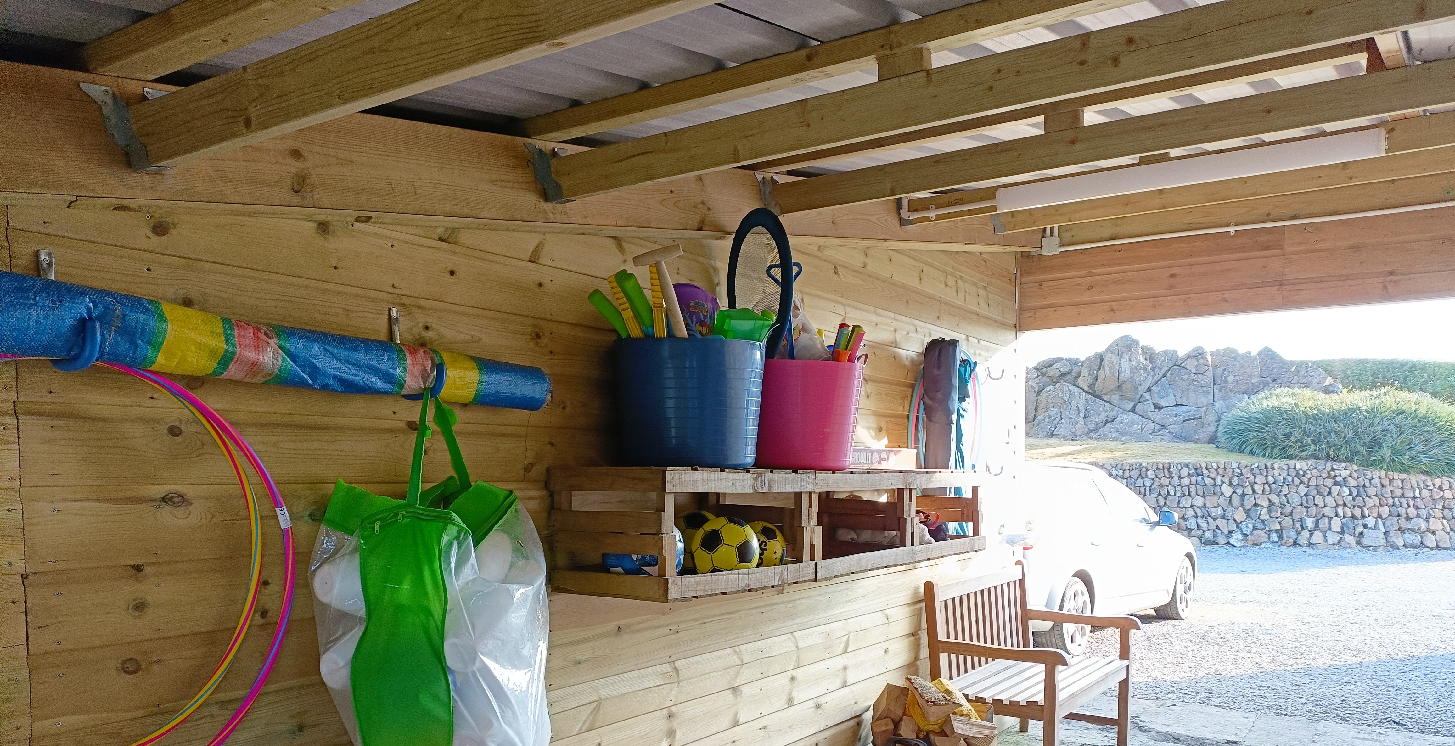 Outside shower with lots of hanging for your wetsuits etc.
